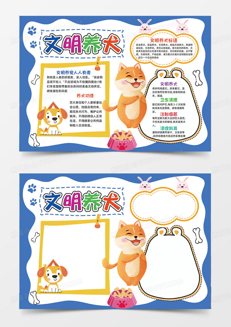 本作品为文明养犬宠物可爱插画蓝色卡通手抄报, 编号:g9r44np0j1, 格式为 psd, 大小19 MB, 本作品下载后,先解压,解压之后用推荐软件 PhotoShop(CC) 打开, 然后进行编辑功能。